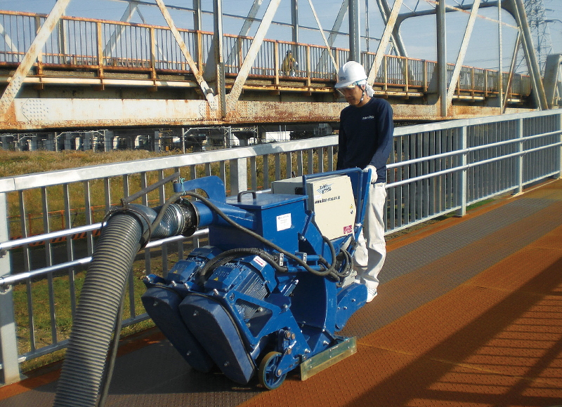 鉄橋床板/縞鋼板錆付着除去